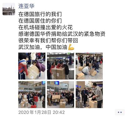 疫情爆发时,公司员工连亚华一家恰巧在德国旅游,在回国的机场正好碰到德国华侨们,因捐赠给国家的防疫物资20箱约18000只口罩无法运回国,而心急如焚,连亚华一家挺身而出,主动帮助德国华侨们将防疫物资带回了祖国。公司员工周晓玮积极响应社区号召,定向捐献口罩等防疫物资给了武汉市中心医院。公司的党员们也纷纷捐赠防控新冠病毒专项经费。