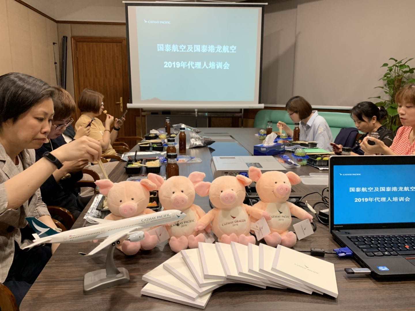 5月23日中午,国泰港龙航空的销售人员来我司,介绍国泰航空及国泰港龙航空的最新产品和运价。